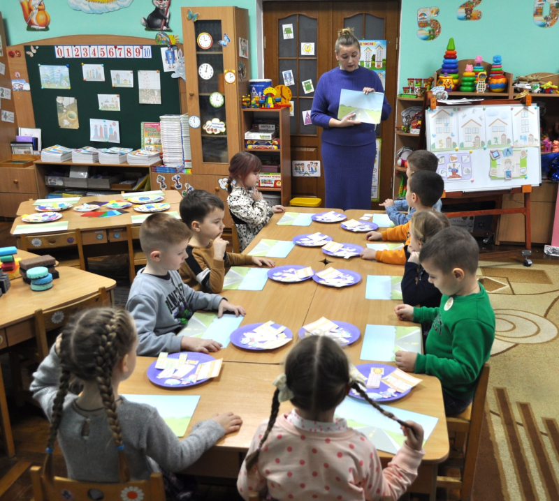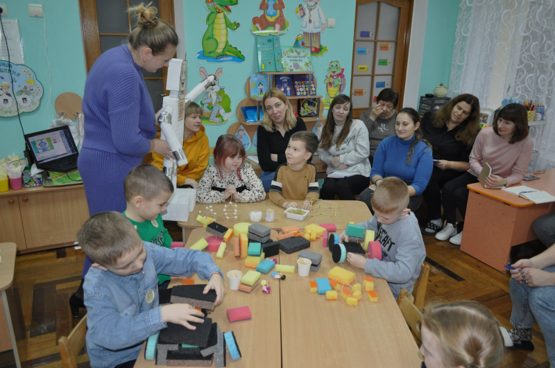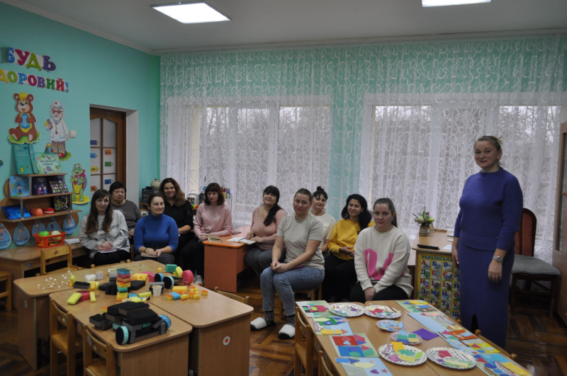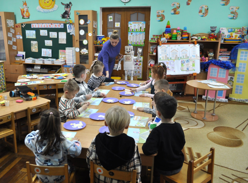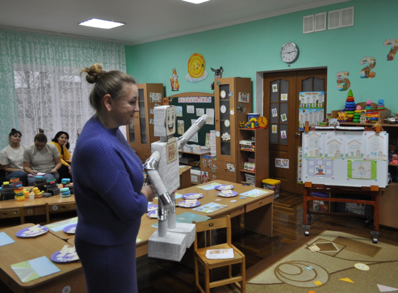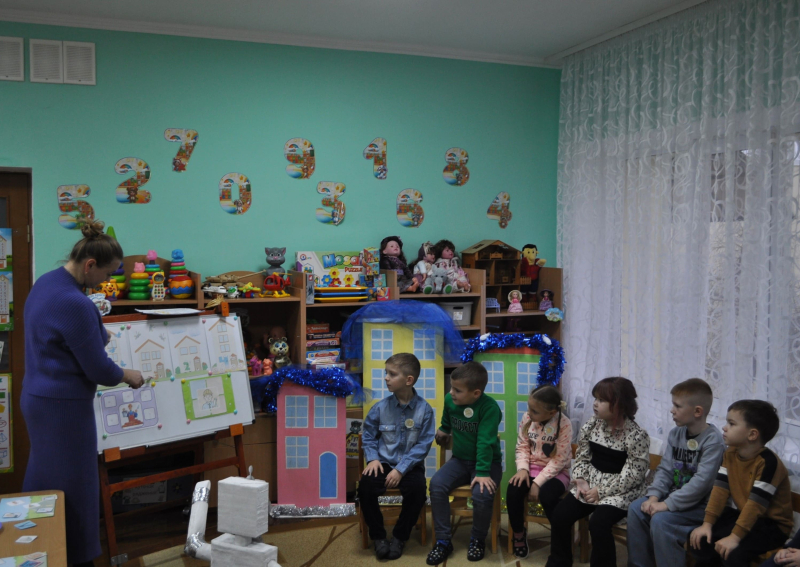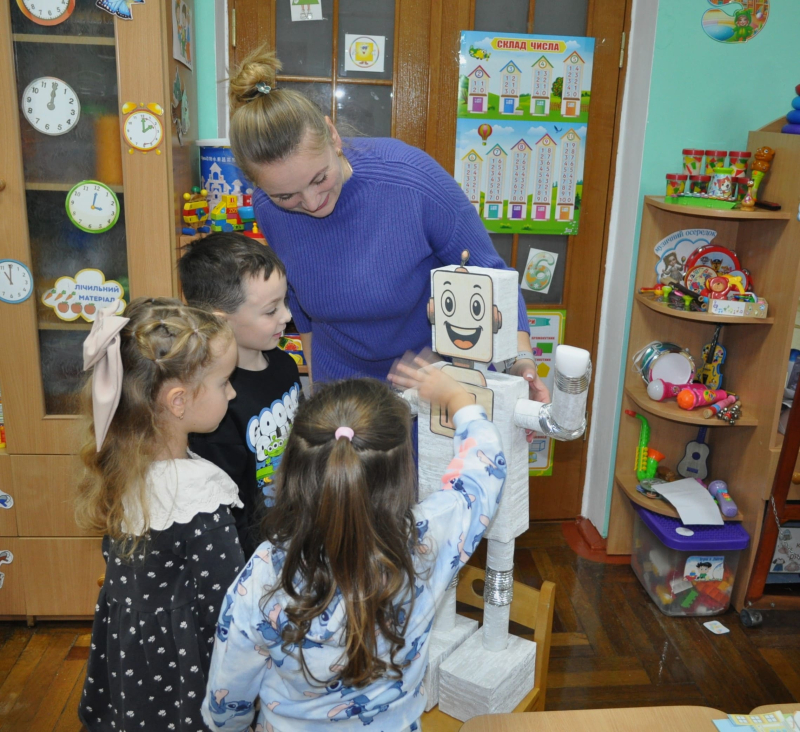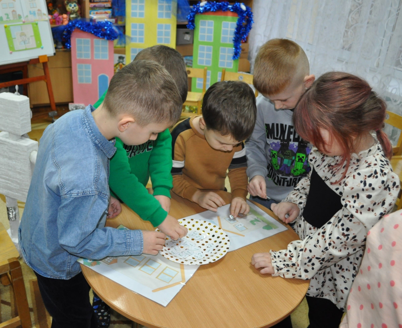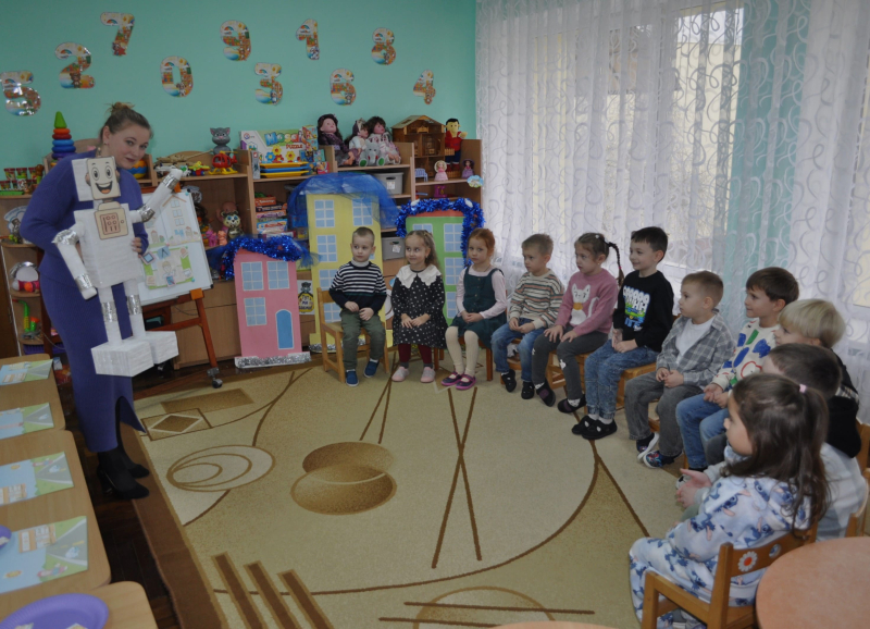 11.12.25 відбувся колективний перегляд комбінованого заняття з математики "Будуємо місто майбутнього" у старшій групі № 14 (вихователь Ольга Парчук). Маленькі дослідники вирушили у захопливу подорож, де перетворилися на справжніх архітекторів та будівельників! Заняття поєднало цікавий світ математики з креативним конструюванням, де діти будувати місто мрії. Дошкільнята збагатили свої уявлення про важливі професії - будівельника та архітектора та дізналися, які інструменти необхідні для їхньої роботи, а також закріпили знання про геометричні фігури (як площинні: квадрат, коло, трикутник, прямокутник, овал, ромб, трапеція, так і об'ємні), вивчаючи їх властивості. На занятті їх чекали захопливі математичні завдання: лічба до 10 у прямому і зворотному порядку та ланцюжком, називання чисел-сусідів і дослідження складу числа у межах 5. Діти активно розвивали просторові уявлення, орієнтуючись за поняттями ліворуч, праворуч, посередині, біля, під, над, та вчилися будувати прості моделі за заданими умовами. Для цього педагог використала незвичайні матеріали для конструювання: кухонні губки, дерев'яні палички, насінини гороху, маршмелов. На занятті малюків супроводжував іграшковий Робот Сава, який допомагав розвивати логічне мислення, уяву, творчі здібності та дрібну моторику рук. Особлива увага приділилася вмінню планувати свої дії та стимулюванню творчої ініціативи.