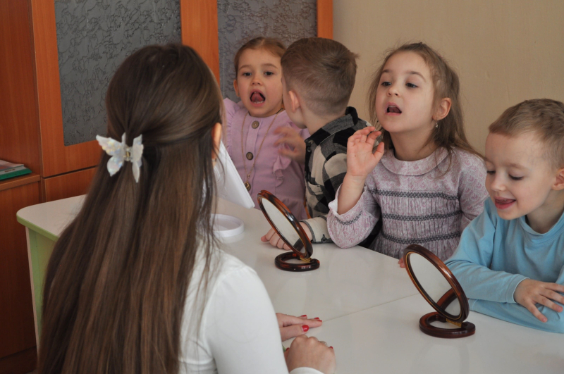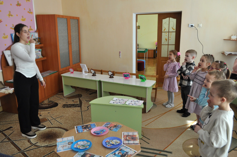 Правильне положення язика та губ: педагог філігранно коригувала артикуляцію, допомагаючи дітям відчути вібрацію звука [Р] та чіткість [Л].