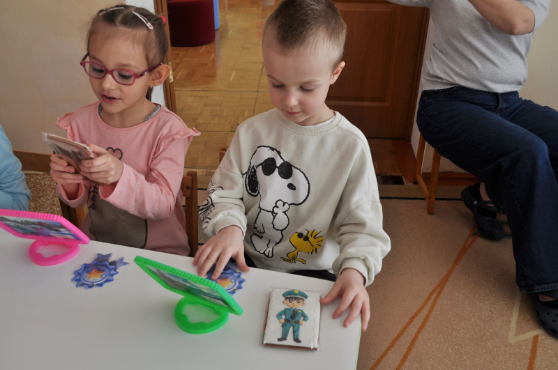 12.03.2026 році у нашому закладі дошкільної освіти відбувся колективний перегляд корекційно-розвиткового логопедичного заняття у старшій групі № 5 (вчитель-логопед Анастасія Овдіюк), яке стало яскравим прикладом поєднання новітніх технологій, професійної майстерності та щирого дитячого захоплення. Вчитель-логопед підготувала для вихованців справжній інтерактивний квест на тему «Професії наших батьків», де кожен етап був спрямований на закріплення звука [Л] та опанування складного звука [Р]. Заняття розпочалося з несподіванки - до дітей звернувся справжній поліцейський (тато одного з вихованців), який прислав малечі листи із завданнями. Використання ІКТ-технологій дозволило створити ефект повної зануреності: діти відчули себе помічниками правоохоронців, відповідальними за важливу місію.