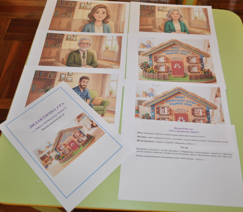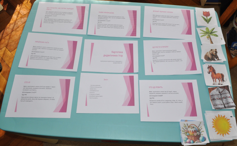 Завданням педагогів було - розробити картотеку з не менше як 10-ти дидактичних ігор (назва, мета, хід гри), де б візуальний контент або тексти та дидактичний матеріал до них були створені за допомогою ШІ.