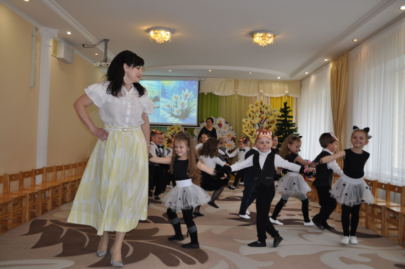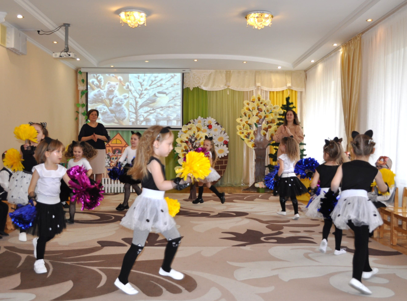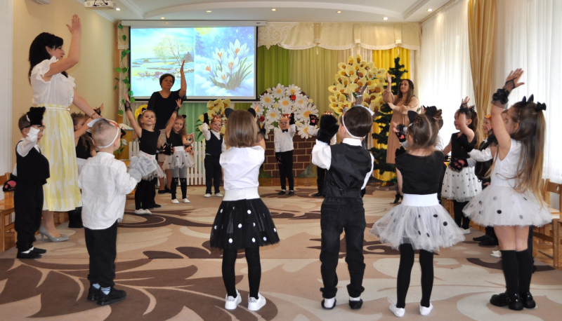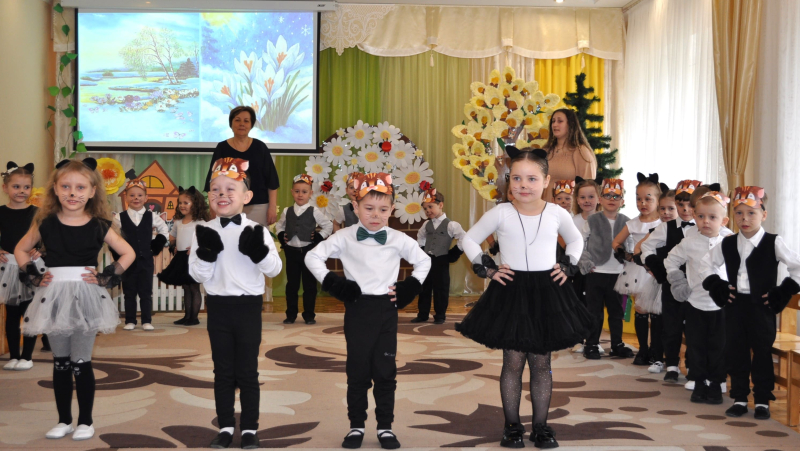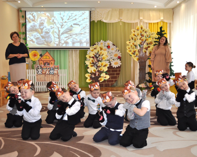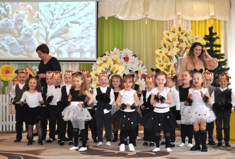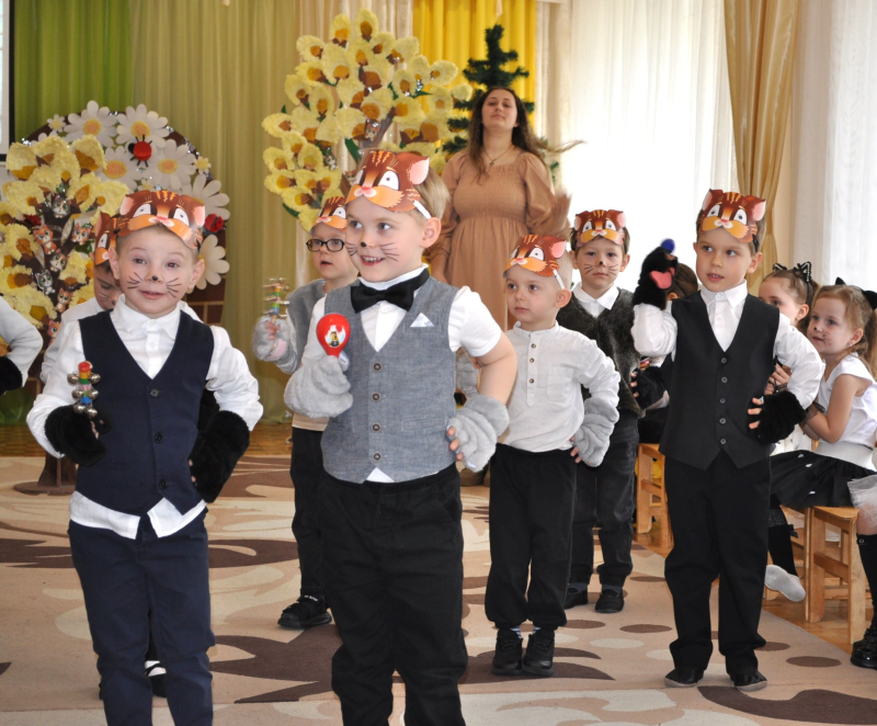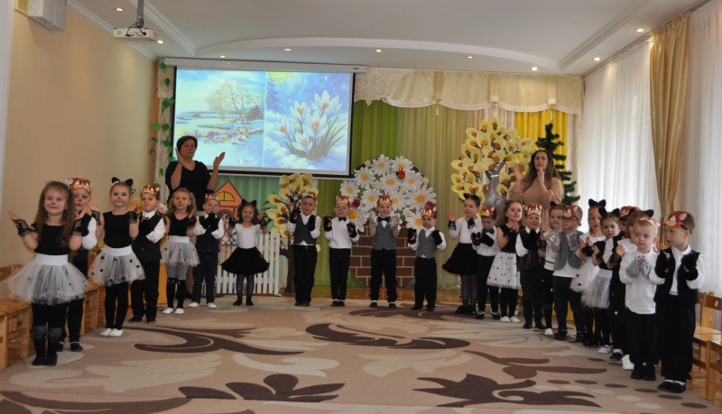 Усе почалося з ніжного хороводу та заклику Весни, яка не забарилася і завітала до малят із кошиком кольорових стрічок. Але справжня магія відбулася біля розквітлої верби - Весна-чарівниця змахнула паличкою і перетворила слухняних дітлахів на кумедних, енергійних кошенят! Зала миттєво перетворилася на майданчик для драйвової руханки «Супер-паті», де кожен хвостик рухався в такт музиці.