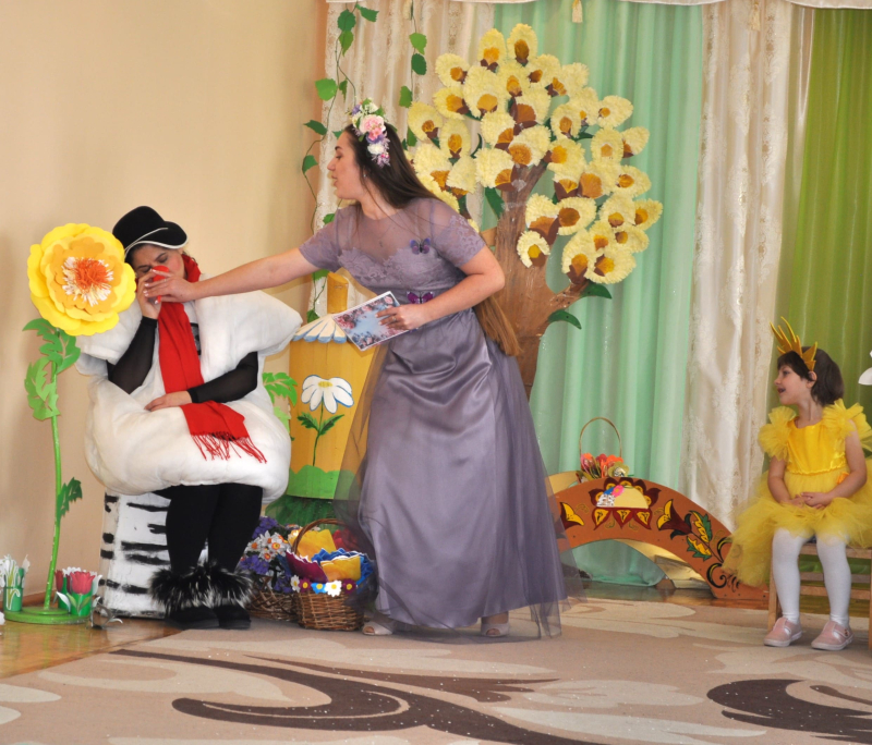 Під час свята наші маленькі артисти закликали весну гучними піснями та віршами; перевтілювалися у жайворонків, шпаків та соловейків; створили неповторний шумовий оркестр «Весняні голоси»; кружляли у весняних хороводах та ніжних танцях із квітами. Завдяки дружбі та теплу дитячих сердець, Сніговик розтанув, повернувши вкрадені квіти, а весна остаточно вступила у свої права, роздавши малятам тепло і подаруночки!