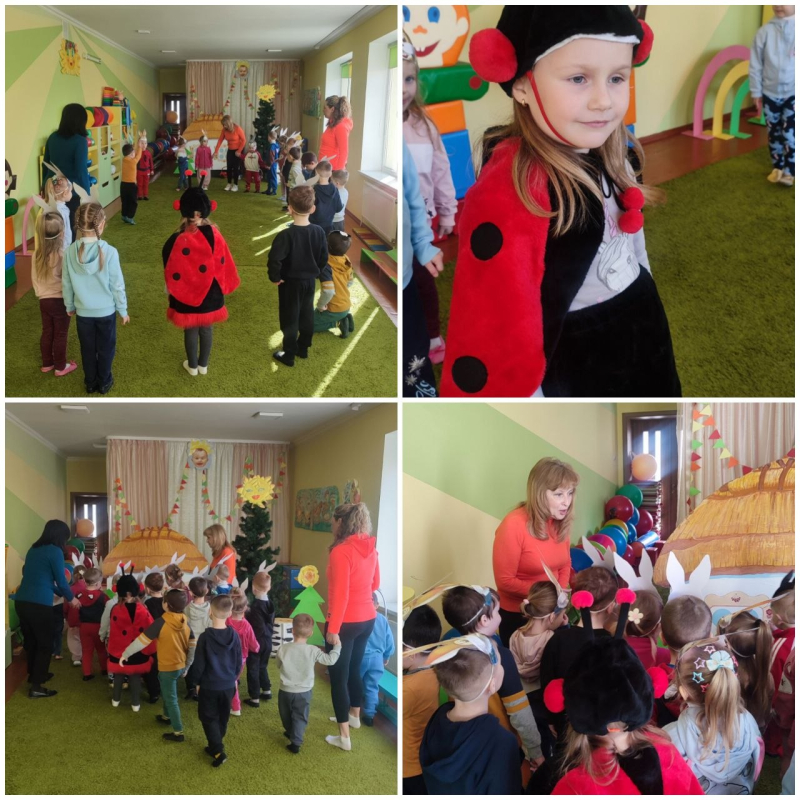 Розпочалася пригода з драйвової руханки разом із гостем - жуком Сонечком, який навчив дітей та Вуханчика правильно виконувати вправи «Прокидайся, сонечко!». Щоб відновити сили героя, малята взяли участь у грі «Вітамінний кошик», де вправно сортували корисні овочі та фрукти, демонструючи чудові знання про здорове харчування. Не обійшлося і без веселощів - у рухливій грі «Лисиця та зайці» вихованці тренували свою спритність та швидкість реакції.