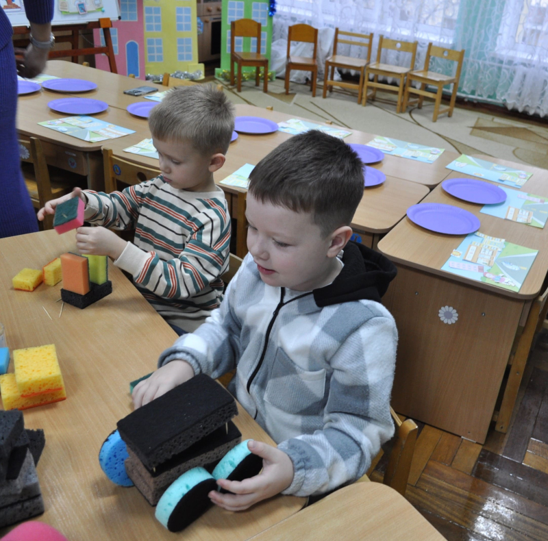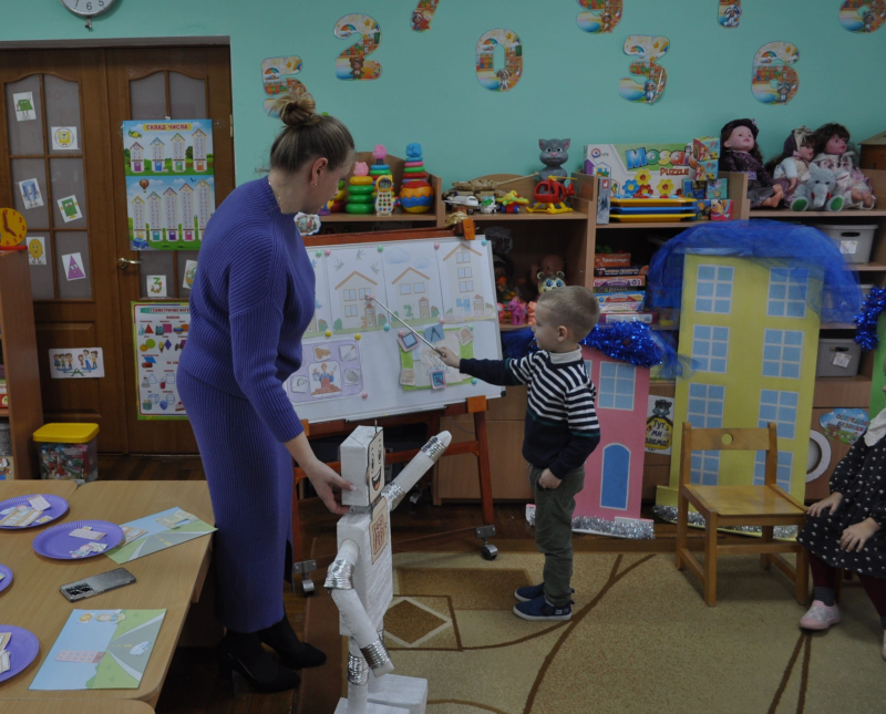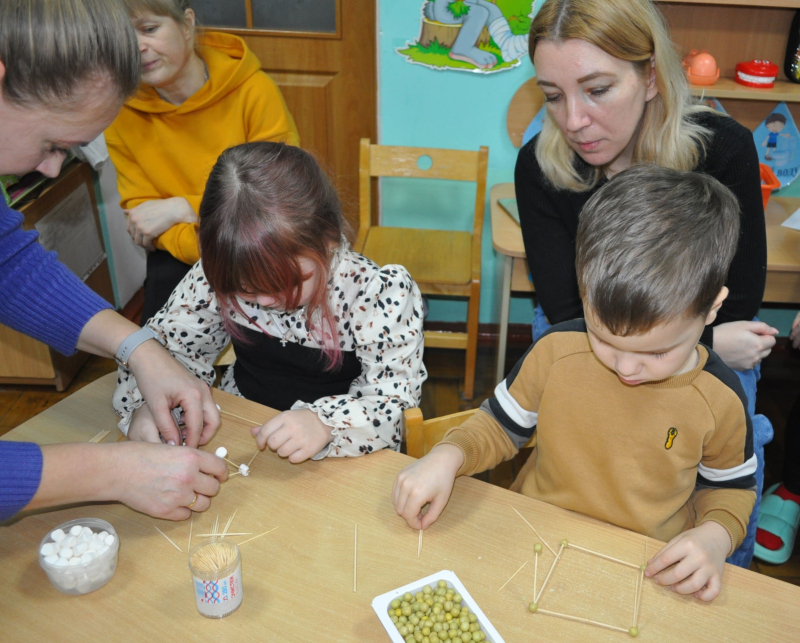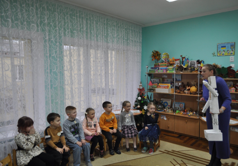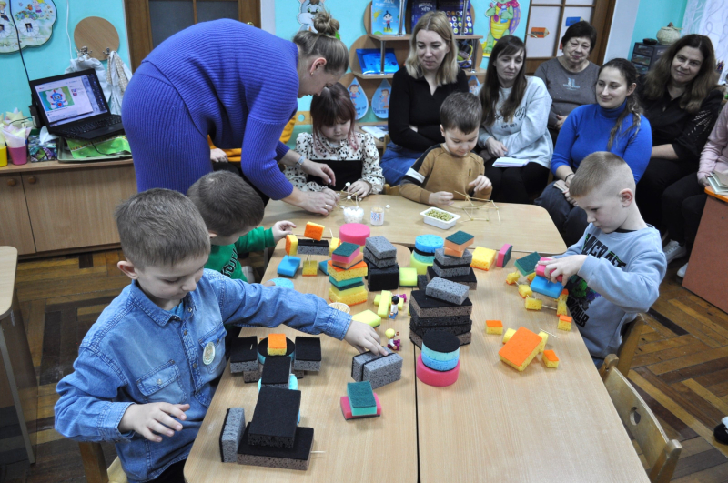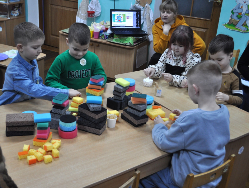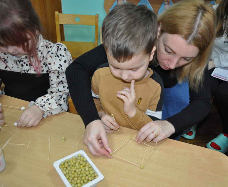 11.12.25 відбувся колективний перегляд комбінованого заняття з математики "Будуємо місто майбутнього" у старшій групі № 14 (вихователь Ольга Парчук). Маленькі дослідники вирушили у захопливу подорож, де перетворилися на справжніх архітекторів та будівельників! Заняття поєднало цікавий світ математики з креативним конструюванням, де діти будувати місто мрії. Дошкільнята збагатили свої уявлення про важливі професії - будівельника та архітектора та дізналися, які інструменти необхідні для їхньої роботи, а також закріпили знання про геометричні фігури (як площинні: квадрат, коло, трикутник, прямокутник, овал, ромб, трапеція, так і об'ємні), вивчаючи їх властивості. На занятті їх чекали захопливі математичні завдання: лічба до 10 у прямому і зворотному порядку та ланцюжком, називання чисел-сусідів і дослідження складу числа у межах 5. Діти активно розвивали просторові уявлення, орієнтуючись за поняттями ліворуч, праворуч, посередині, біля, під, над, та вчилися будувати прості моделі за заданими умовами. Для цього педагог використала незвичайні матеріали для конструювання: кухонні губки, дерев'яні палички, насінини гороху, маршмелов. На занятті малюків супроводжував іграшковий Робот Сава, який допомагав розвивати логічне мислення, уяву, творчі здібності та дрібну моторику рук. Особлива увага приділилася вмінню планувати свої дії та стимулюванню творчої ініціативи.