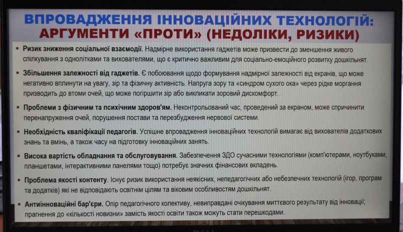 Інноваційні технології в ЗДО - це інструмент, ефективність якого залежить від методики та дозованості використання. Головний принцип - технологія має доповнювати та збагачувати освітній процес, а не замінювати живе спілкування, гру та рухову активність. Важливо дотримуватися санітарно-гігієнічних норм щодо часу роботи з гаджетами та забезпечити високу якість контенту, що використовується.